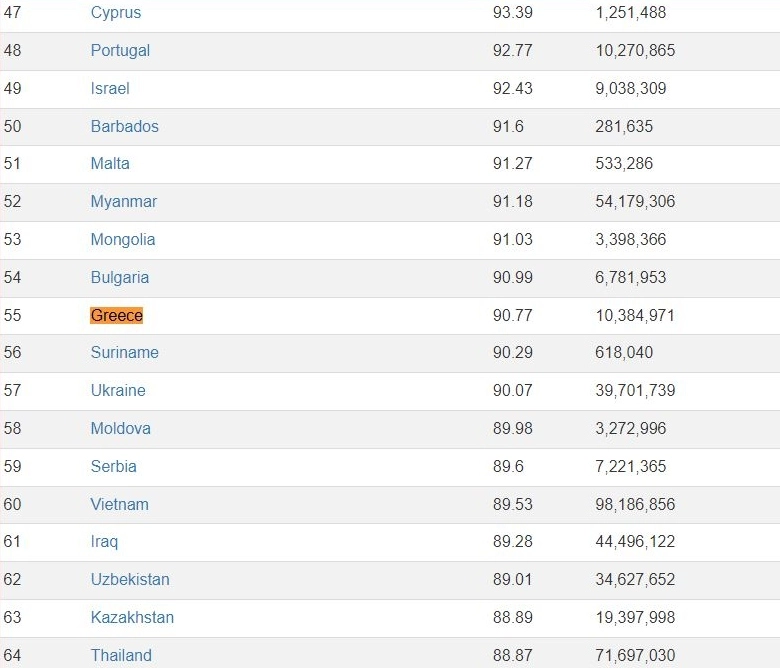 Θα αναρωτιέστε τώρα – και λογικό – πού βρίσκεται η Ελλάδα σε αυτή την κατάταξη.