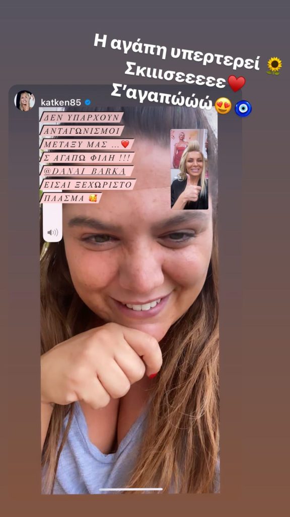 Από την πλευρά της η Δανάη Μπάρκα έκανε repost το story και σημείωσε: «Η αγάπη υπερτερεί. Σκίσε! Σ΄αγαπώ!».