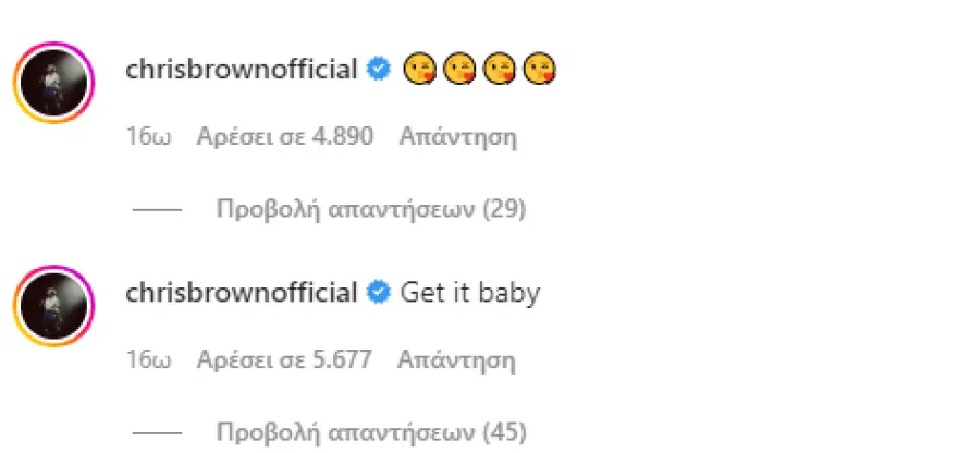 Στο ένα άφησε emoji με πολλά φιλιά και σε ένα άλλο την ενθάρρυνε για την απόδοσή της.