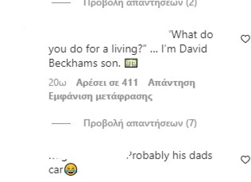 Ο διάσημος TikToker, Ντάνιελ Μακ, εντόπισε τον Μπρούκλιν Μπέκαμ στον δρόμο και είχαν έναν σύντομο διάλογο μεταξύ τους. Ο Ντάνιελ Μακ συνηθίζει να σταματάει ανθρώπους με εκκεντρικά και ακριβά αυτοκίνητα, ρωτώντας τους τι δουλειά κάνουν.
