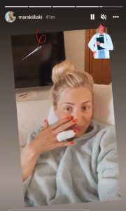 Η ίδια πόζαρε σε stories με μπανταρισμένο το ένα δάχτυλό της και με το γνωστό χιούμορ της είπε: «Καλημέρα, χρόνια πολλά σε όλους, σας ευχαριστώ για τις ευχές. Ήταν μια υπέροχη παραμονή Δεκαπενταύγουστου. Τέσσερα ράμματα. Κάπως έτσι πέρασα χθες το βράδυ. Τέσσερα ράμματα στο δαχτυλάκι. Θα μπορούσε να ήταν τένοντας, οπότε λέω δόξα τω Θεώ και κάνω τον σταυρό μου. Βοήθησε η Παναγία γι’ άλλη μια φορά. Παρόλα αυτά, τέσσερα ωραία ραμματάκια. Έσπασε ένα πιάτο στο χέρι μου, δεν κατάλαβα πως. Έκανα αντιτετανικό ορό. Πολύ ωραία εμπειρία κι αυτή, στον ποπό τον κάνει, δεν το ήξερα. Αυτά! Τώρα πρέπει να κάνω μπάνιο στη θάλασσα και να κρατάω ψηλά το χέρι και στο μπάνιο έβαλα μια σακούλα και το έδεσα, δεν πέρασε νερό. Καλή εβδομάδα να έχουμε, που θα την έχουμε».