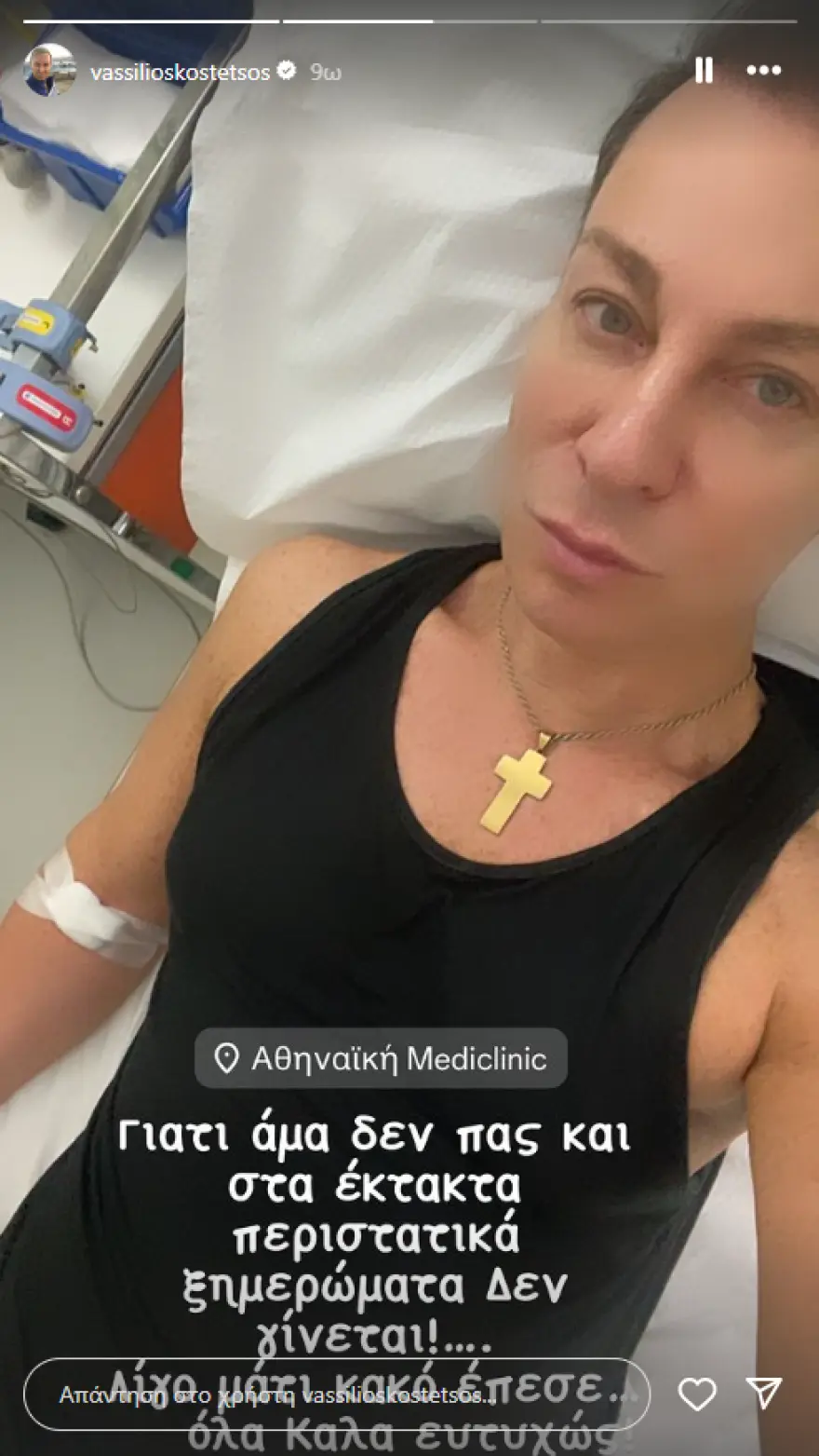 Ωστόσο, ο Βασίλειος Κωστέτσος δεν έδωσε περισσότερες λεπτομέρειες σχετικά με το πρόβλημα υγείας που αντιμετώπισε.