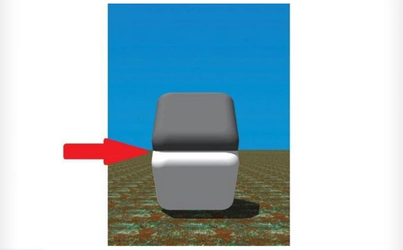 Πρακτικά αυτό σημαίνει ότι όλο το τριγύρω σκηνικό, ο ορίζοντας και η σκίαση στο σημείο που ενώνονται τα δύο πλαίσια, κάνουν τον εγκέφαλο να νομίζει ότι το πάνω πλαίσιο είναι πιο σκούρο από το κάτω πλαίσιο.