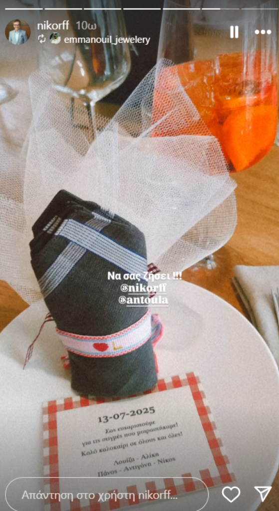 Η ευχάριστη είδηση έγινε γνωστή μέσα από μία ανάρτηση που έκανε ο Νίκος Ορφανός στο Instagram. Συγκεκριμένα, δημοσίευσε μία δική του φωτογραφία, γράφοντας «βάφτιση της κόρης μας σήμερα, να μας ζήσει, καλό καλοκαιράκι!».