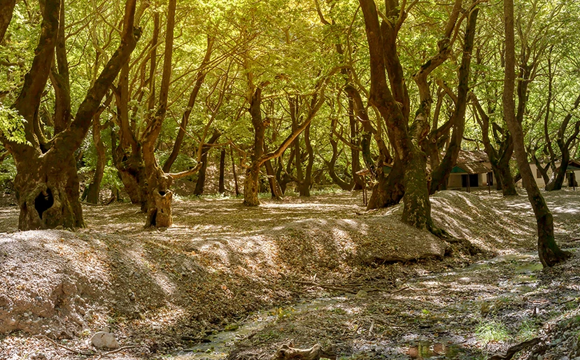 Το τοπίο μοιάζει ουτοπικό, με τα αμέτρητα πλατάνια να απλώνονται σε μια μεγάλη έκταση και τα γάργαρα νερά του Αροάνιου ποταμού να «ντύνουν» μουσικά το όλο σκηνικό.