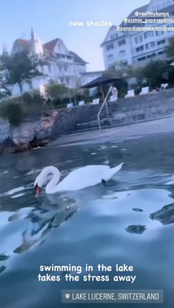 Η διάσημη σχεδιάστρια δημοσίευσε story στο Instagram ένα σέλφι βίντεο όπου φαίνεται να απολαμβάνει το μπάνιο της στην εντυπωσιακή λίμνη Λουκέρνη στην Ελβετία.