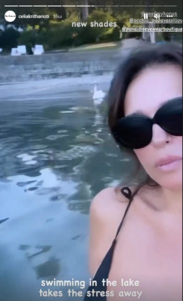 Εν συνεχεία, η Κριθαριώτη στρέφει το βίντεο προς τη λίμνη, αποκαλύπτοντας έναν πανέμορφο λευκό κύκνο που κολυμπάει σε απόσταση αναπνοής.