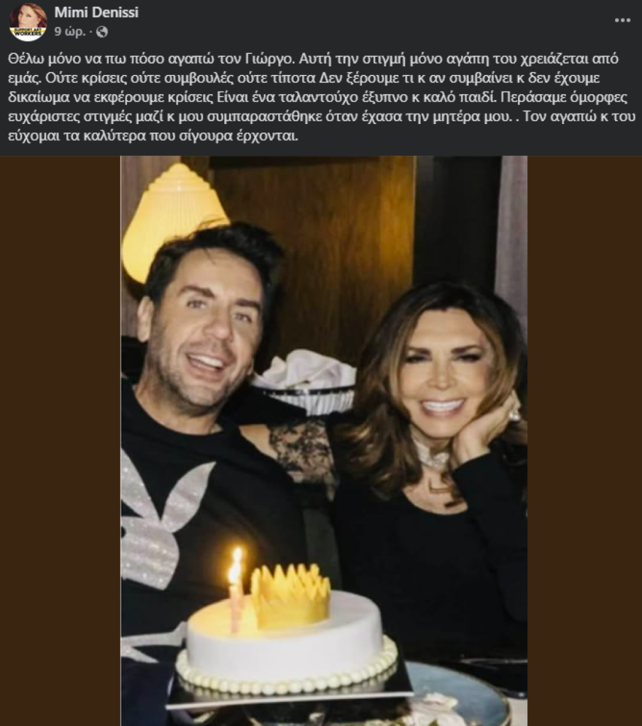 «Θέλω μόνο να πω πόσο αγαπώ τον Γιώργο. Αυτή την στιγμή μόνο αγάπη χρειάζεται από εμάς. Ούτε κρίσεις ούτε συμβουλές ούτε τίποτα.