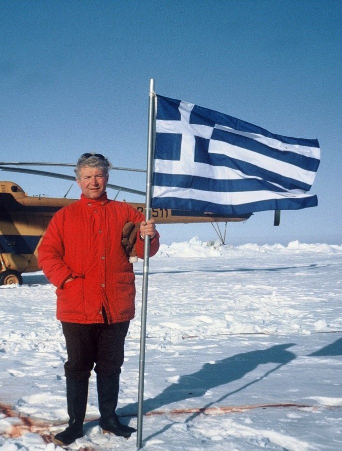 Ο πιο πολυταξιδεμένος άνθρωπος στη Γη, σύμφωνα με το Ρεκόρ Γκίνες, αλλά και το Νational Geographic Traveller, Mπάμπης Μπίζας περιγράφει πως ύψωσε στις 90° βόρειο πλάτος, την ελληνική σημαία.