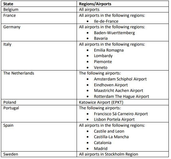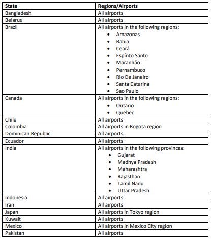 Δείτε αναλυτικά τον πίνακα με τις πόλεις/αεροδρόμια που ο EASA θεωρεί ως επικίνδυνες αφετηρίες:
