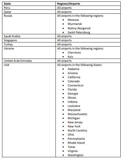 Δείτε αναλυτικά τα αεροδρόμια/πόλεις τρίτων χωρών με κίνδυνο υψηλής μετάδοσης: