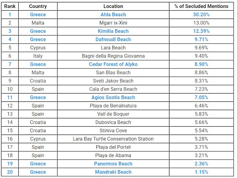 Λόγος για τον οποίο η βρετανική εφημερίδα Mirror δημοσίευσε έναν κατάλογο με τις δέκα πιο πριβέ, ειδυλλιακές παραλίες της Ευρώπης, που επέλεξε η βρετανική tour operator LoveHolidays βάσει αξιολογήσεων πελατών του TripAdvisor και ανάμεσά τους φιγουράρουν -μαντέψτε – τέσσερις ελληνικές.
