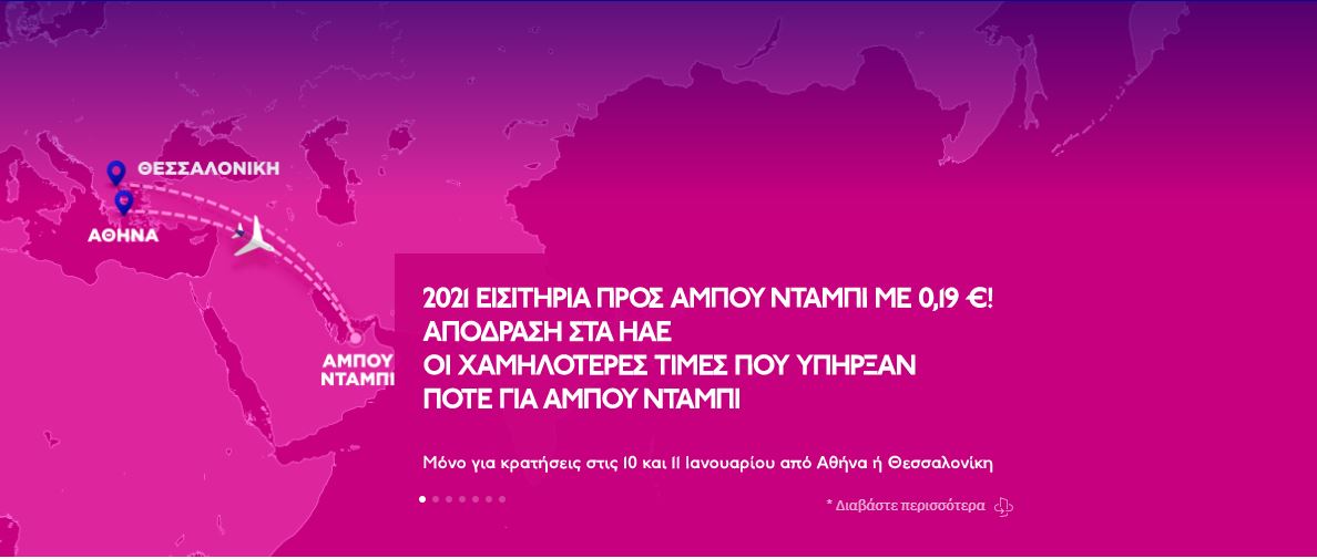 Όπως αναφέρει λοιπόν η εταιρία χαμηλού κόστους, τα εισιτήρια αυτά αφορούν την απευθείας σύνδεση με τα Ηνωμένα Αραβικά Εμιράτα από την Αθήνα και από την Θεσσαλονίκη και η προσφορά ισχύει για το διήμερο 10 και 11 Ιανουαρίου. Κοινώς, σήμερα είναι η τελευταία ημέρα που κάποιος μπορεί να την εκμεταλλευτεί.