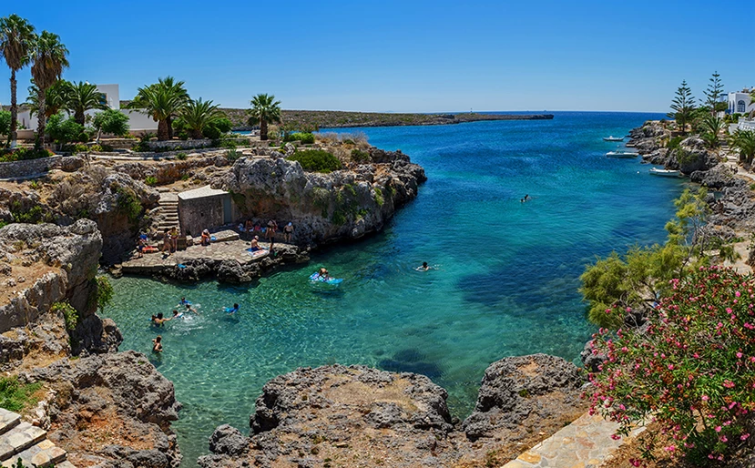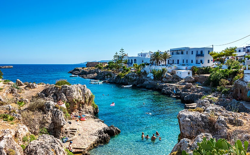 Η κινηματογραφική, θα έλεγε κανείς, παραλία του χωριού με τα χαρακτηριστικά βράχια ολόγυρά της, συνθέτει ένα σκηνικό που μεταφέρει μαγικά στη δεκαετία του ΄60 με τους λουόμενους να απολαμβάνουν την ηλιοθεραπεία τους πάνω στα βράχια και να πραγματοποιούν βουτιές στα κρυστάλλινα, τιρκουάζ νερά του μικρού κολπίσκου, που μοιάζει με πισίνα, απευθείας από αυτά.
