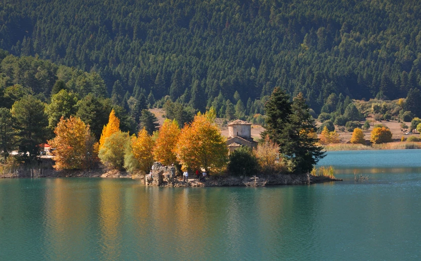 Πάνω σε μια στενή λωρίδα γης, μέσα στην τεχνητή λίμνη, που η κατασκευή της ολοκληρώθηκε τη δεκαετία του 1990, βρίσκεται το μικρό εκκλησάκι του Αγίου Φανούριου.