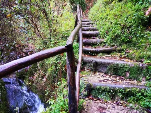 Από ‘κει και πέρα, μέχρι να επιστρέψεις το όχημά σου, κινείσαι με τα πόδια. Μπορείς να ξεκινήσεις τη βόλτα σου από τις ξύλινες γέφυρες που υπάρχουν στα αριστερά σου, όπως κοιτάς το κέντρο του χωριού. Τ