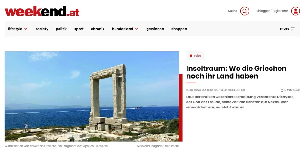 «Ο έρωτας με τη Νάξο που ξεκίνησε για τους Αυστριακούς με την πρώτη ματιά πριν 30 χρόνια, εξελίχθηκε σε μια υπέροχη μακροχρόνια σχέση αγάπης», αναφέρει ο ιστότοπος diestererin.at.