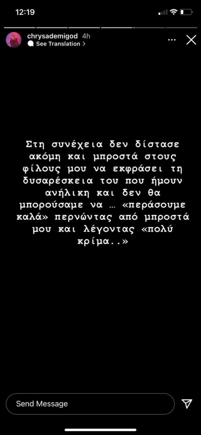 Οι αναρτήσεις της Chrysa όπου διηγήθηκε τη συνάντησή της με τον παρουσιαστή σε κάποιο μπαρ όταν εκείνη ήταν ανήλικη.
