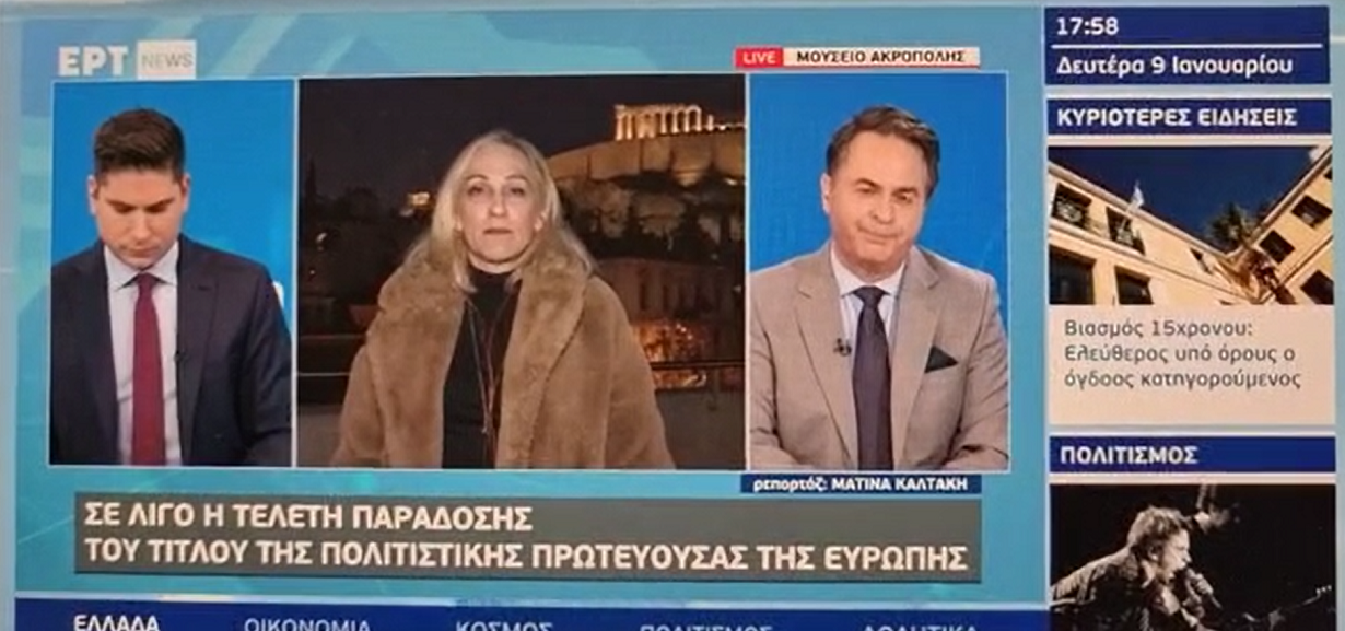 Συγκεκριμένα, η δημοσιογράφος Ματίνα Καλτάκη βρισκόταν στο Μουσείο της Ακρόπολης όπου θα γίνει η παρουσίαση των τριών πολιτιστικών πρωτευουσών της Ευρώπης, μεταξύ των οποίων και η Ελευσίνα.