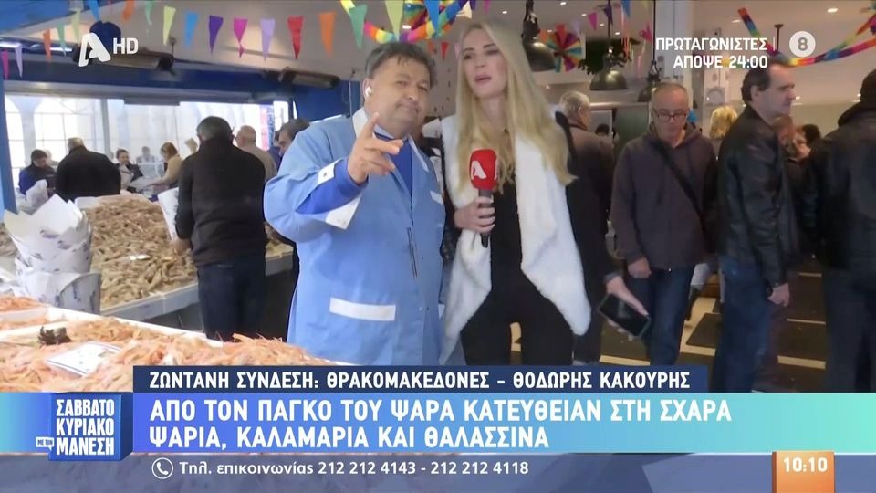 Συγκεκριμένα, η ζωντανή σύνδεση ήταν σε ένα ιχθυοπωλείο, ενόψει και της Καθαράς Δευτέρας και ο ιδιοκτήτης εξέφρασε τον θαυμασμό του για την δημοσιογράφο που βρισκόταν εκεί.