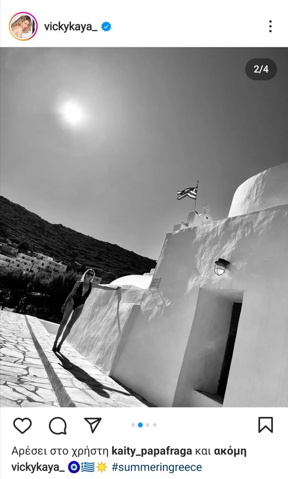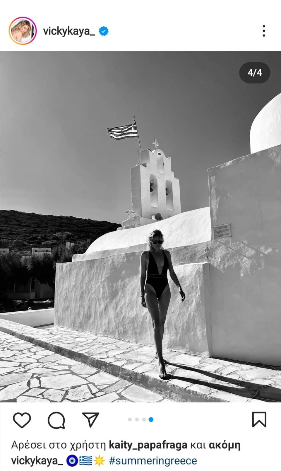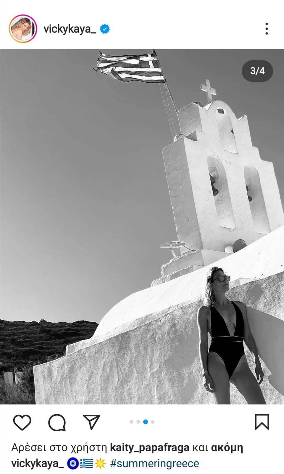 Η Βίκυ Καγιά ανέβασε σχετικές φωτογραφίες στο προφίλ της στο Instagram, ενώ απόλαυσε τις διακοπές της παρέα με την Μαρίνα Βερνίκου και τον Μίλτο Καμπουρίδη.
