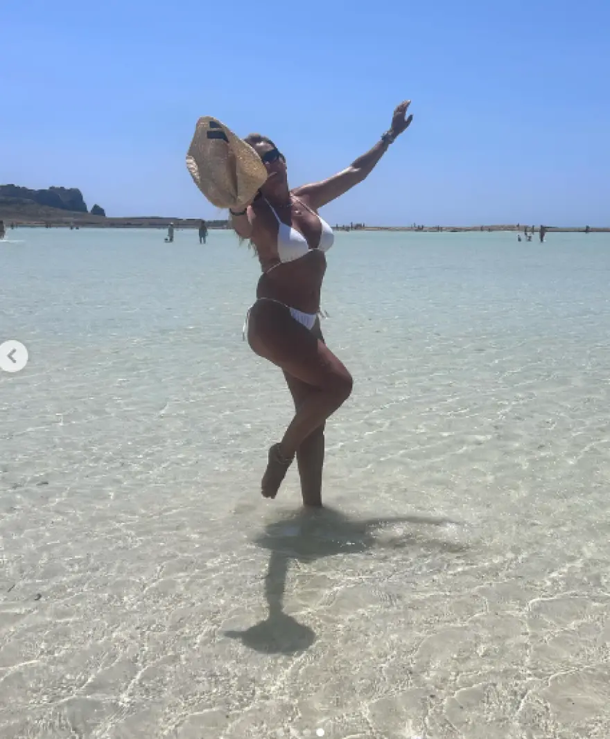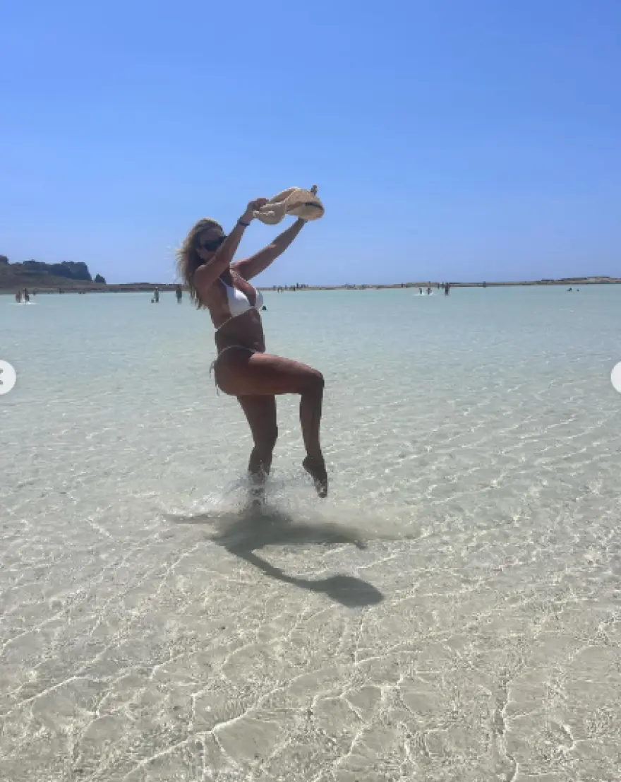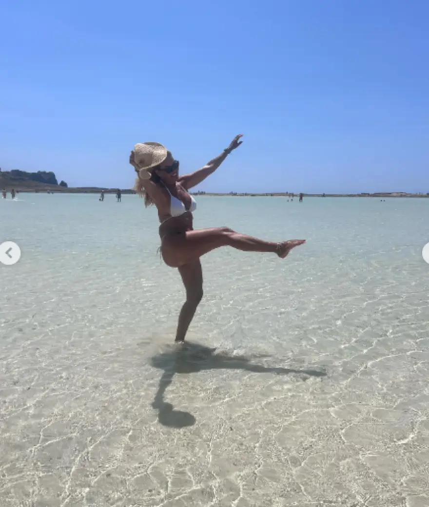 Πιο συγκεκριμένα, η ηθοποιός ανάρτησε φωτογραφίες της από την ώρα που απολάμβανε τη θάλασσα σε παραλία των Χανίων. Ποζάρει με κέφι, φορώντας ένα λευκό μπικίνι και κρατώντας ένα καπέλο στα χέρια.