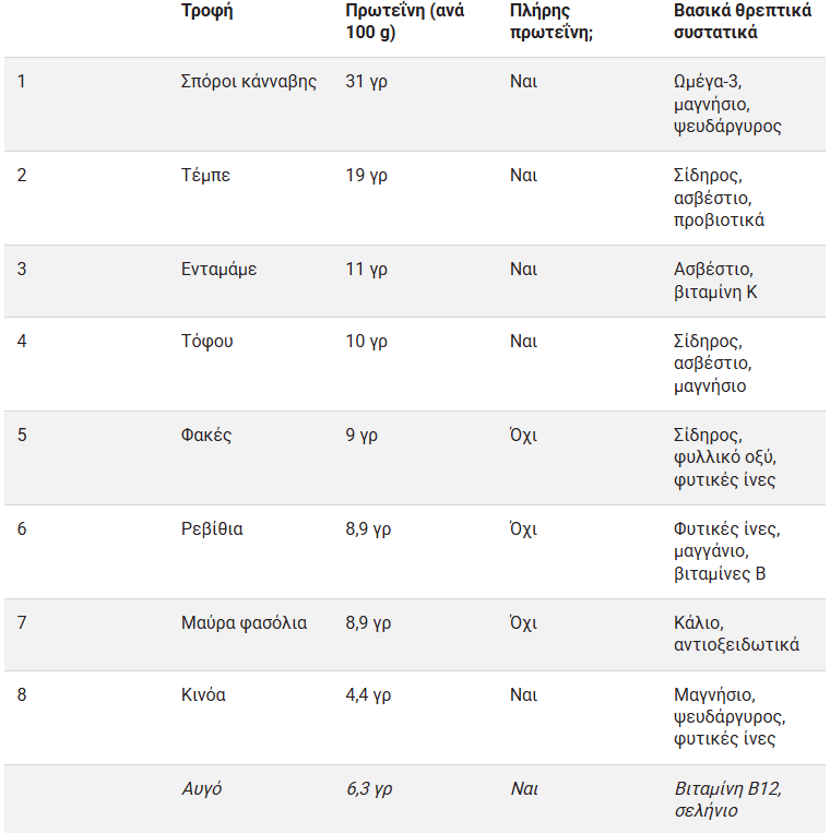 Υπάρχουν οκτώ συγκεκριμένες φυτικές τροφές που όχι μόνο πληρούν αλλά υπερβαίνουν την περιεκτικότητα σε πρωτεΐνη ενός μεγάλου αυγού.