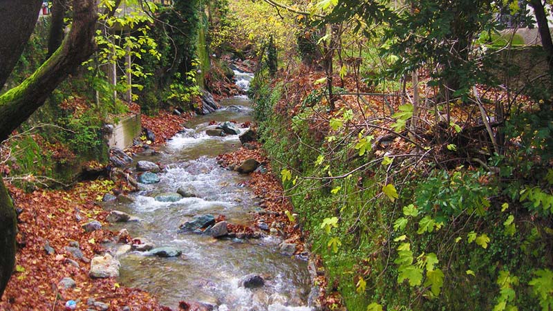 Έχει παντού τρεχούμενα νερά και είναι περιτριγυρισμένο από καταπράσινες πλαγιές.