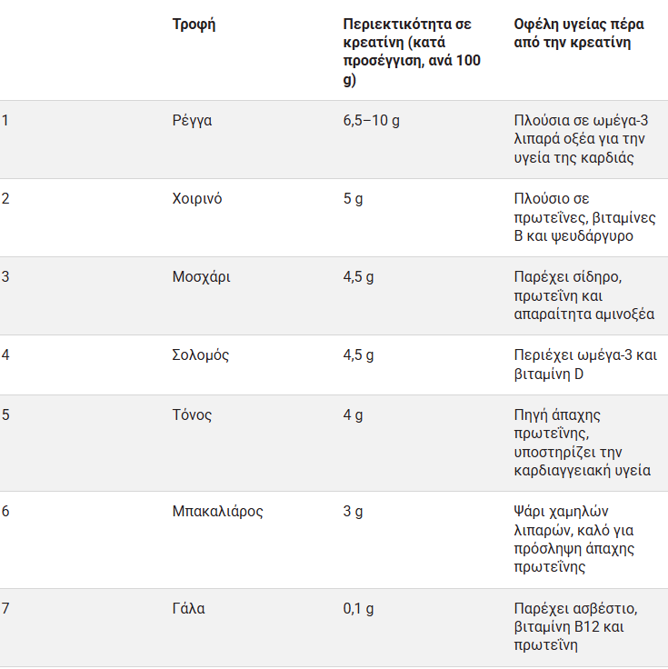 Ποιες τροφές έχουν την υψηλότερη περιεκτικότητα σε κρεατίνη;