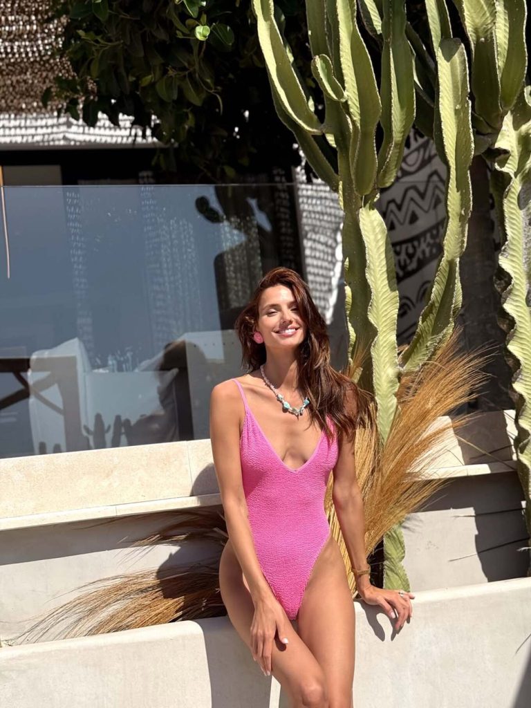 Η Ηλιάνα Παπαγεωργίου φωτογραφήθηκε σε διάφορες πόζες, φορώντας το ολόσωμο μαγιό της, ενώ όπως μπορούμε να δούμε, ροζ ήταν τα σκουλαρίκια αλλά και ένα πουκάμισο που επίσης φόρεσε.