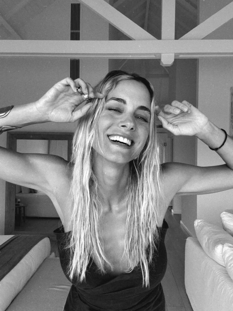 Σε κάποια από τα στιγμιότυπα, ποζάρει με ένα μπλε μπικίνι μπροστά στη θάλασσα, ενώ σε άλλα φωτογραφίζεται χαμογελαστή μπροστά στον φακό.