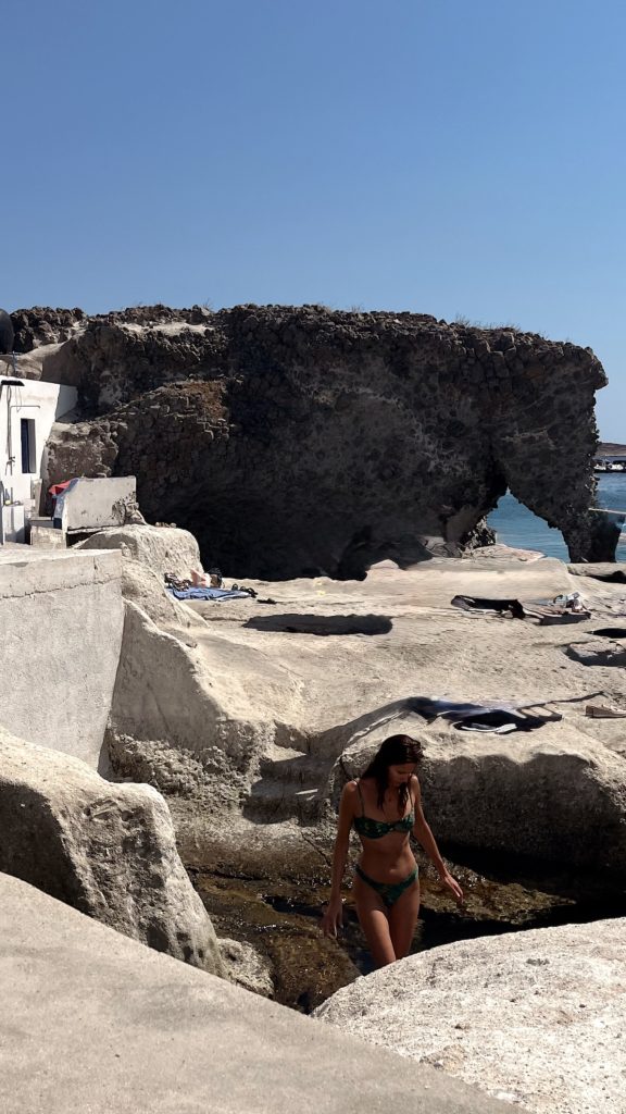Ενθουσιασμένη με την τοποθεσία και την ενέργεια της Κιμώλου, είναι η Ηλιάνα Παπαγεωργίου, η οποία δημοσίευσε σχετικές φωτογραφίες με μπικίνι από το μικρό νησί του Αιγαίου.