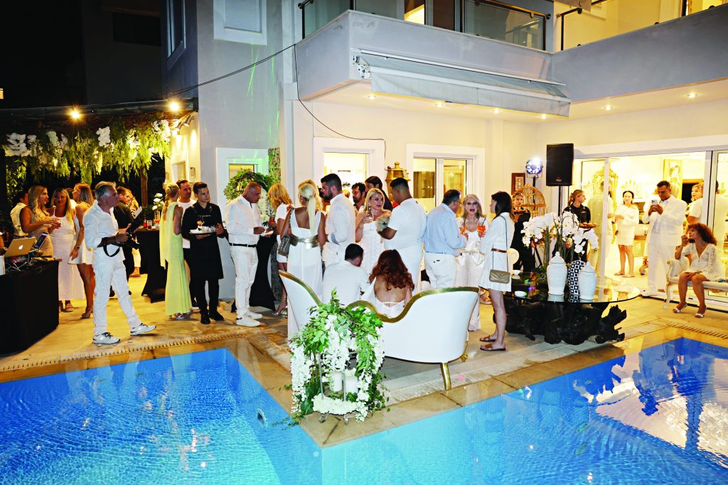 Ο προσεγμένος κήπος, γεμάτος πράσινο και όμορφες λεπτομέρειες, αποτέλεσε το ιδανικό σκηνικό για μια καλοκαιρινή βραδιά που τα είχε όλα. Η φωτισμένη πισίνα, η ατμοσφαιρική μουσική και το εντυπωσιακό catering συνέθεσαν ένα περιβάλλον υψηλής αισθητικής και φιλοξενίας.