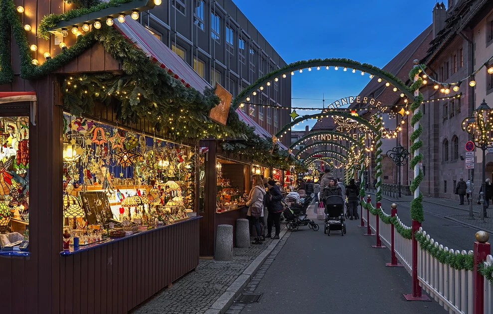 Η χριστουγεννιάτικη περίοδος έχει ήδη ξεκινήσει, και μέχρι την παραμονή των Χριστουγέννων, τους επισκέπτες περιμένει η αγορά της, η Christkindlesmarkt που είναι από τις παλαιότερες στη χώρα με πάγκους γεμάτους παιχνίδια, καρουζέλ και παραδοσιακές γερμανικές λιχουδιές, όπως το λουκάνικο bratwurst ή τα περίφημα αρωματικά μελομακάρονα Lebkuchen. Ενώ το βράδυ οι επισκέπτες συνεχίζουν τη διασκέδασή τους στα μπαρ της περιοχής, με κούπες αχνιστού glühwein και τοπική καπνιστή μπύρα.
