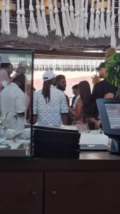 Φορώντας μία βερμούδα παραλλαγής, εντυπωσιακές χρυσές αλυσίδες και κοσμήματα, ο σταρ του «Whatcha Say», απόλαυσε το φαγητό και το ποτό του, συνομίλησε με θαμώνες και πόζαρε χαμογελαστός, παραμένοντας για αρκετές ώρες στο μαγαζί, πριν αποχωρήσει με την παρέα του.