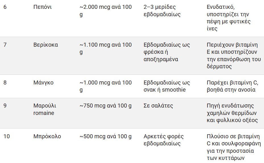 Ποιες τροφές έχουν την υψηλότερη περιεκτικότητα σε βήτα καροτίνη;