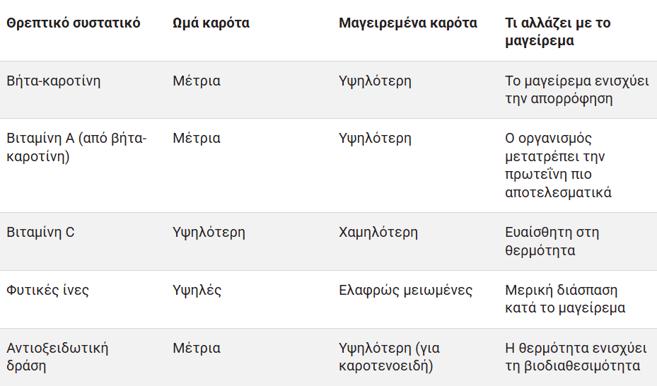 Ποια θρεπτικά συστατικά των καρότων ενισχύονται από το μαγείρεμα;