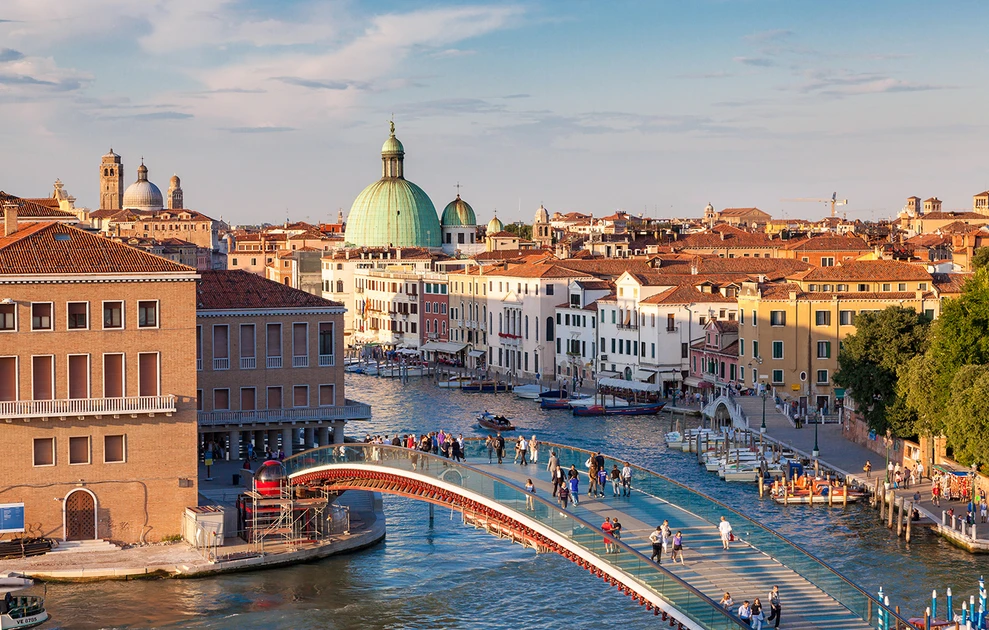 Χτισμένη σε 117 μικρά νησιά που συνδέονται με εκατοντάδες γέφυρες και κανάλια, βρίσκεται σε μια λιμνοθάλασσα της βόρειας Ιταλίας και αποτελεί Μνημείο Παγκόσμιας Κληρονομιάς της UNESCO.