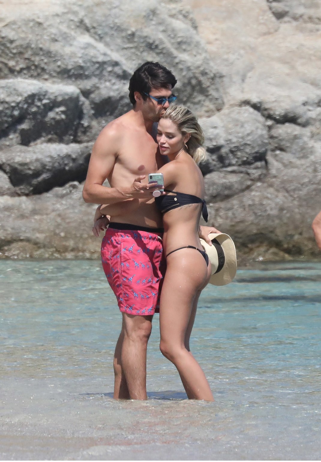 Ο διάσημος σούπερ σταρ φορούσε ένα ροζ μαγιό και γυαλιά ηλίου ενώ η εντυπωσιακή ξανθιά σύντροφός του ένα μικροσκοπικό μαύρο μπικίνι και καπέλο.