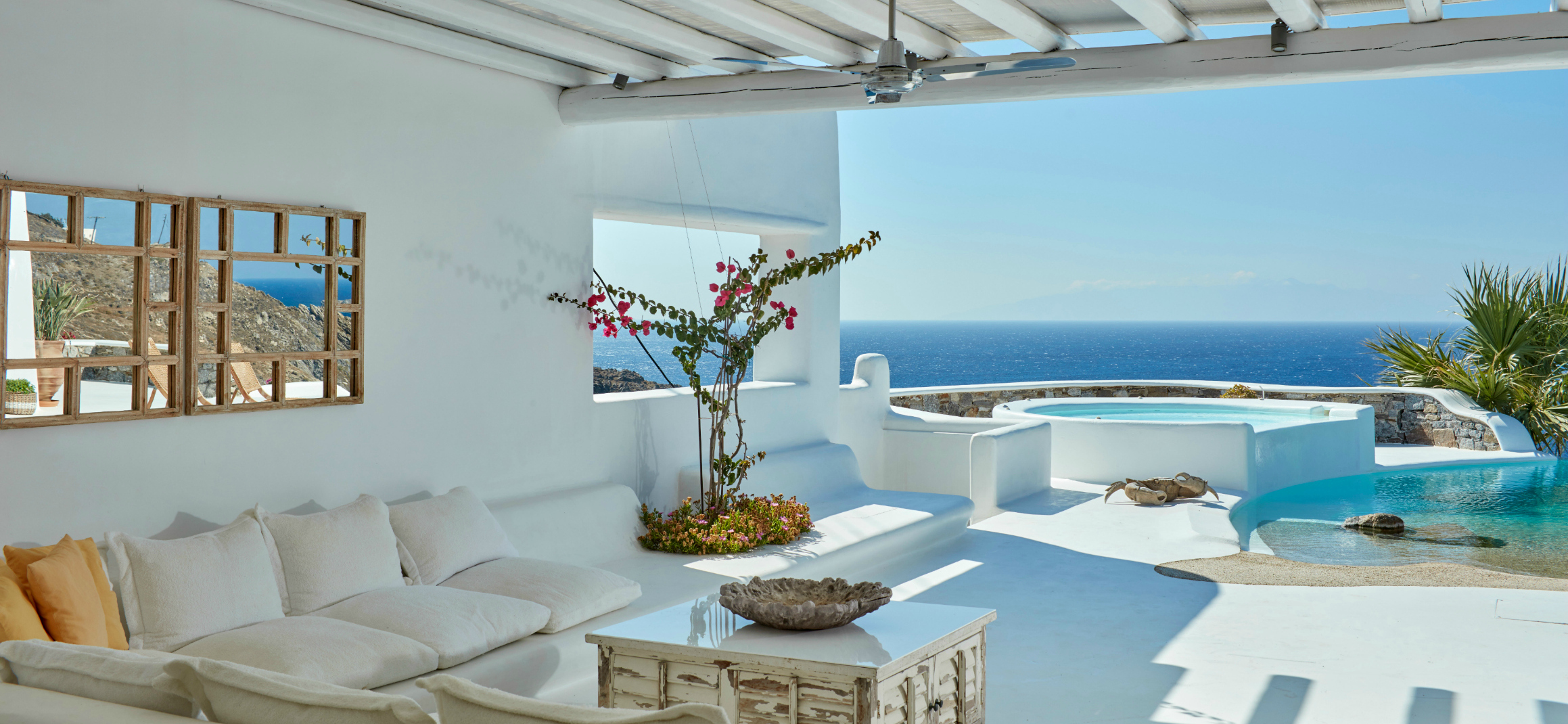 «Οι ξένοι επισκέπτες στο αεροδρόμιο της Μυκόνου αυξήθηκαν σε 282.000 το πρώτο εξάμηνο του 2019. Κάθε ημέρα τον Αύγουστο περισσότερα από 200 αεροπλάνα, ανάμεσά τους ένας σημαντικός αριθμός ιδιωτικών τζετ, προσγειώνονται ή απογειώνονται εκεί. Για εκείνους που δεν έχουν το δικό τους πολυτελές γιοτ, οι επιλογές διαμονής περιλαμβάνουν ξενοδοχεία πέντε αστέρων ή υπερπολυτελείς βίλες, μία από τις οποίες νοικιάζεται για πάνω από 1 εκατ. λίρες τον μήνα. Είναι 1.400 τετραγωνικών μέτρων και διαθέτει μπάτλερ, σεφ, δύο σερβιτόρους, 8 κρεβατοκάμαρες, 9 μπάνια και εξωτερικό χώρο διασκέδασης που μπορεί να φιλοξενήσει 120 άτομα.