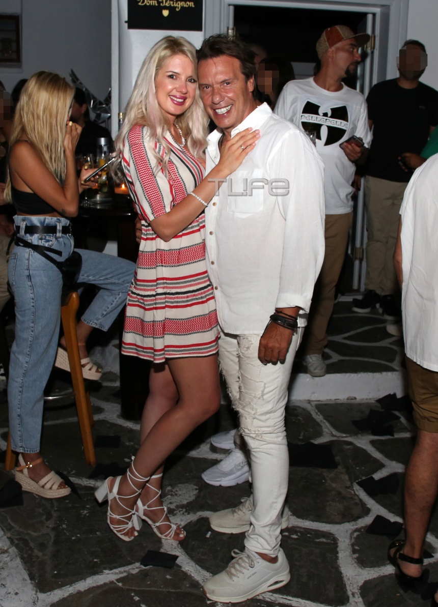 Πρόσφατα, ο φωτογραφικός φακός απαθανάτισε το ζευγάρι σε βραδινή έξοδό του στο νησί των ανέμων και συγκεκριμένα σε γνωστό Champagne & Cocktail Bar, όπου πέρασε στιγμές χαλάρωσης πίνοντας το ποτό του στα γραφικά σοκάκια.