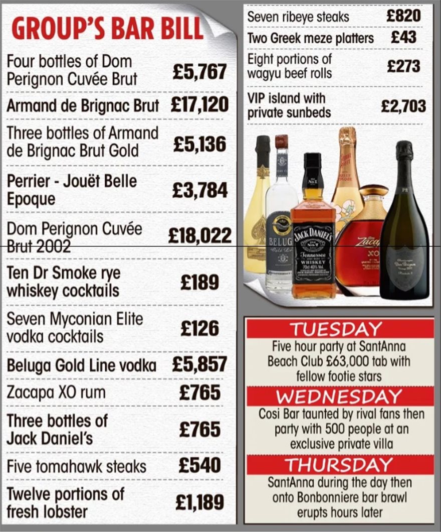 Δείτε τον λογαριασμό που έκανε η παρέα του Μαγκουάιρ, όπως τον παρουσιάζει η Sun: