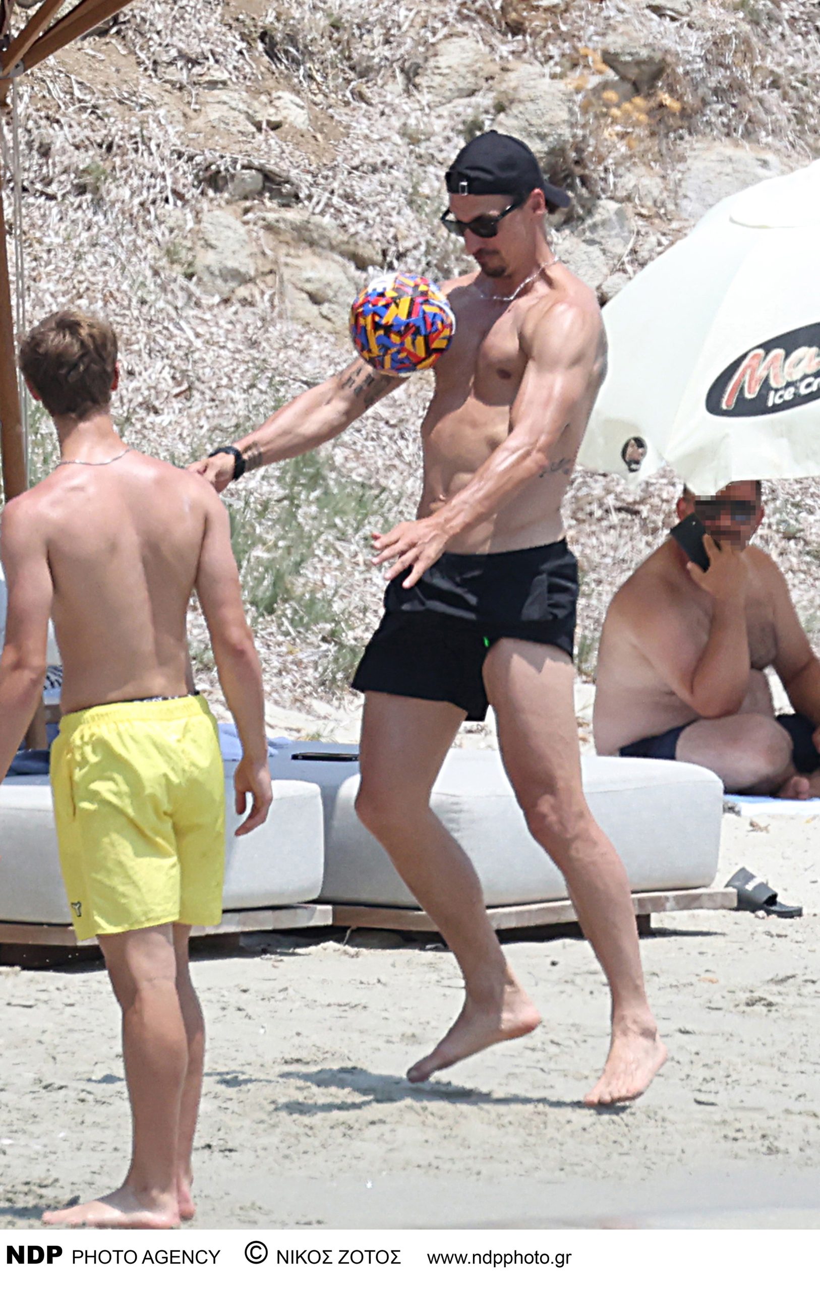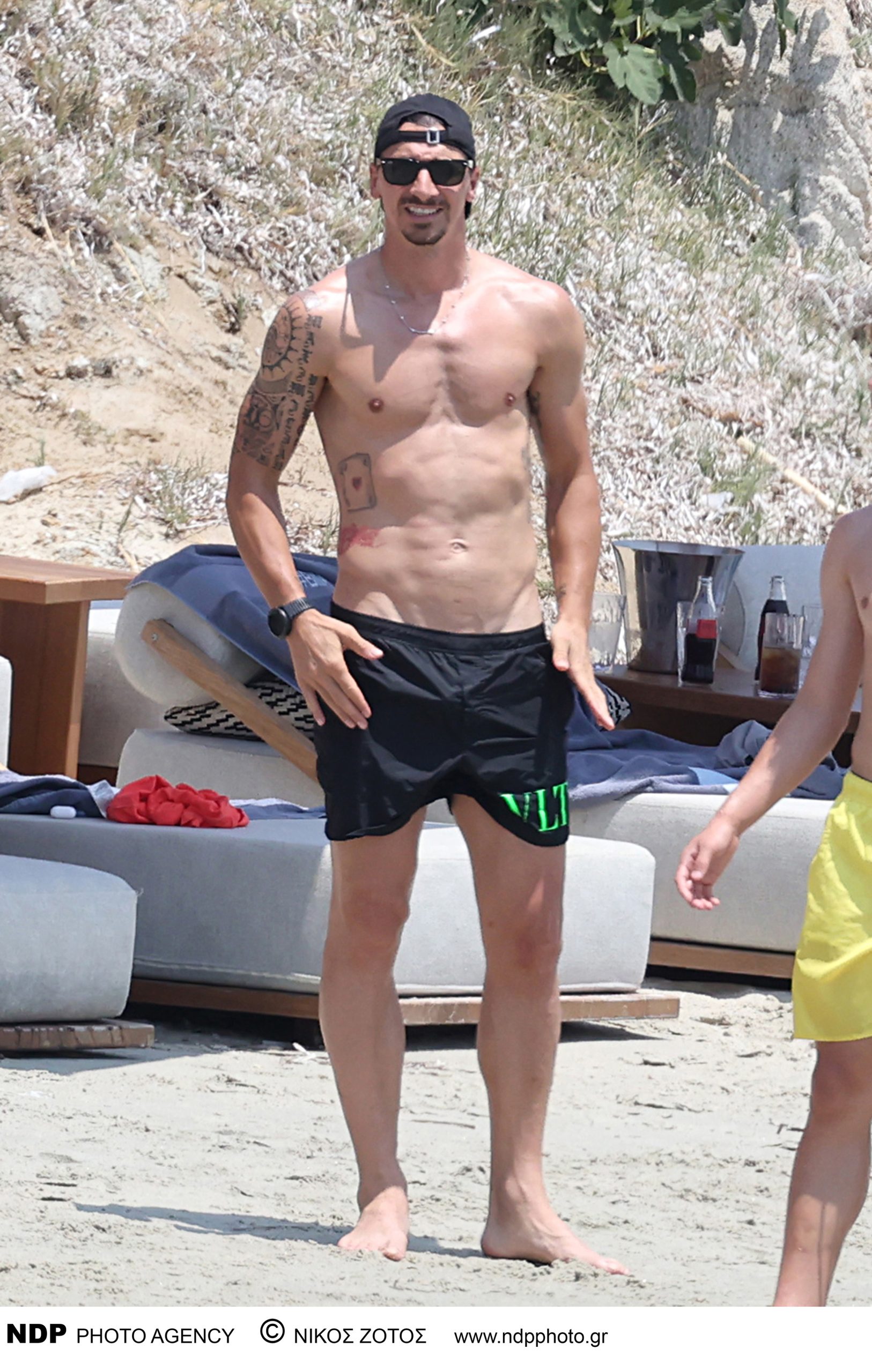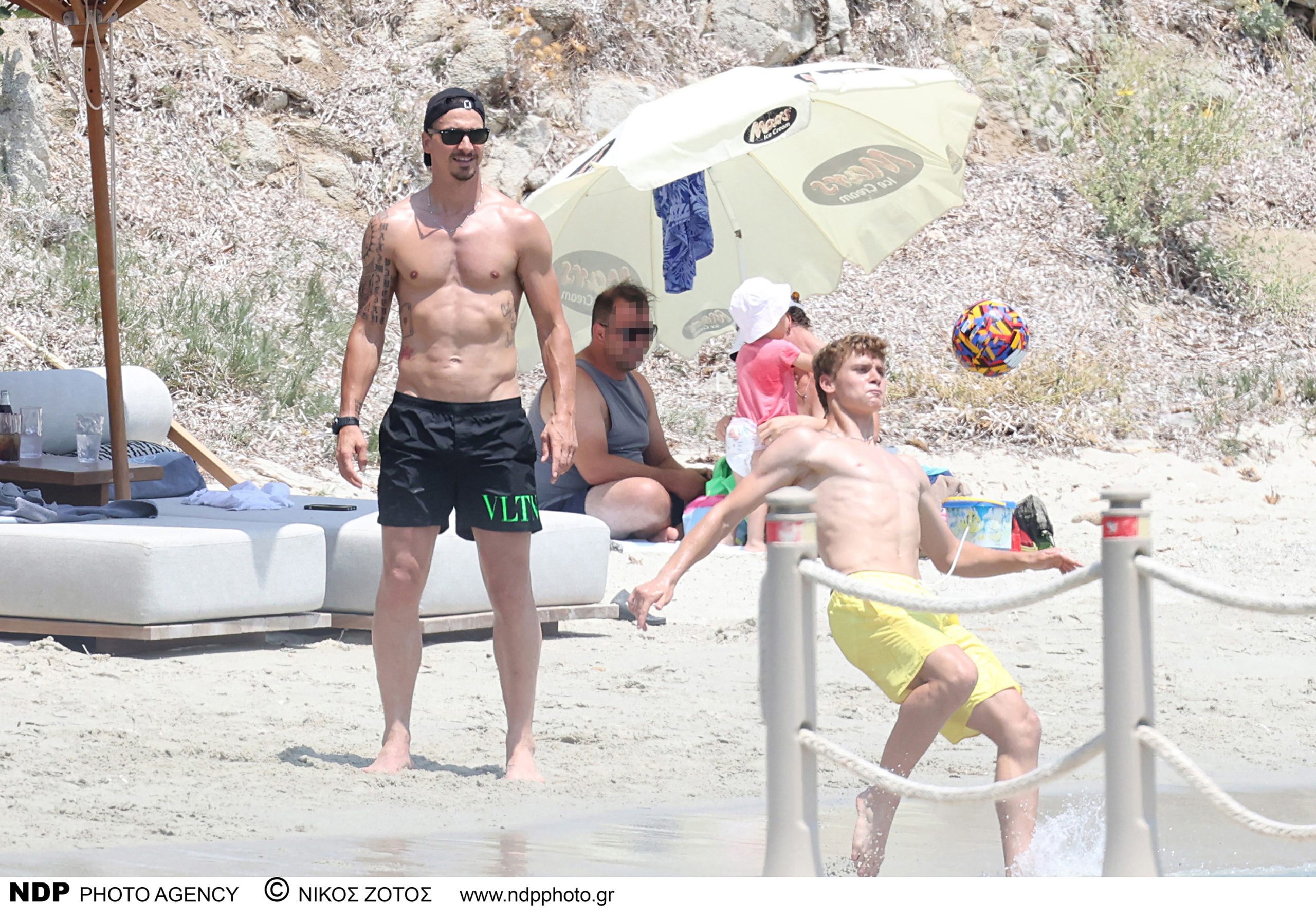 Ο Ιμπραΐμοβιτς εθεάθη σε άποψη φυσική κατάσταση να απολαμβάνει τον ήλιο και τη θάλασσα του Αιγαίου, αδιαφορώντας για την παρουσία του φωτογραφικού φακού. Μαζί του ήταν η σύζυγός του, Σουηδέζα επιχειρηματίας, ηθοποιός και μοντέλο Χελένα Σέγκερ αλλά και ο γιος τους, Μαξιμίλιαν.