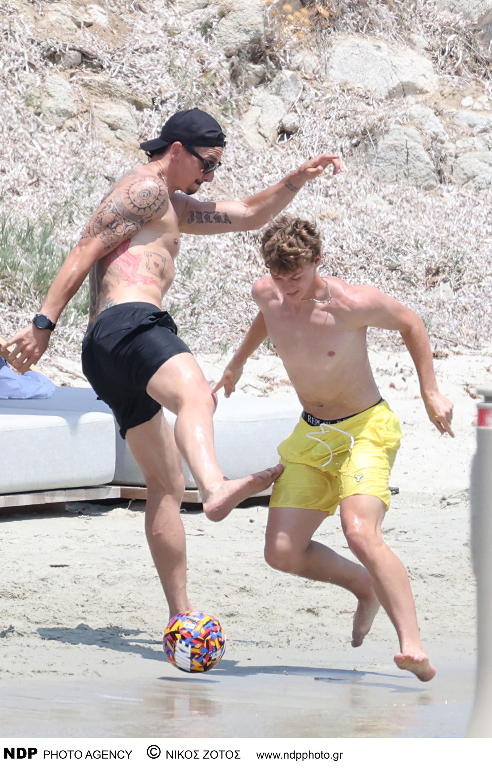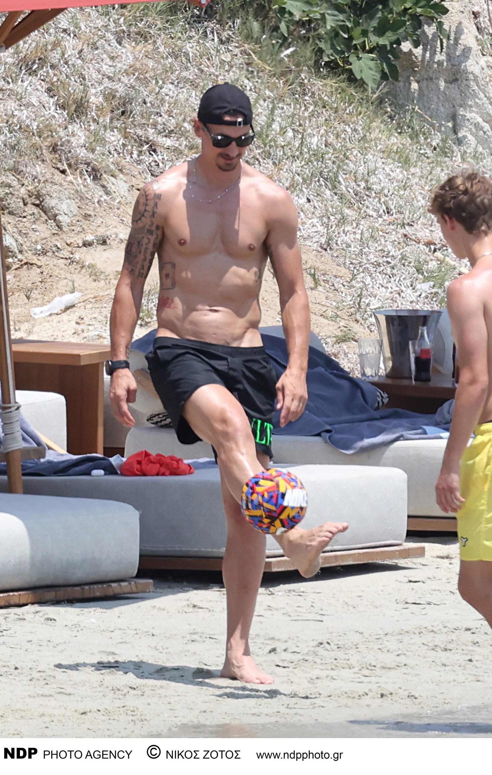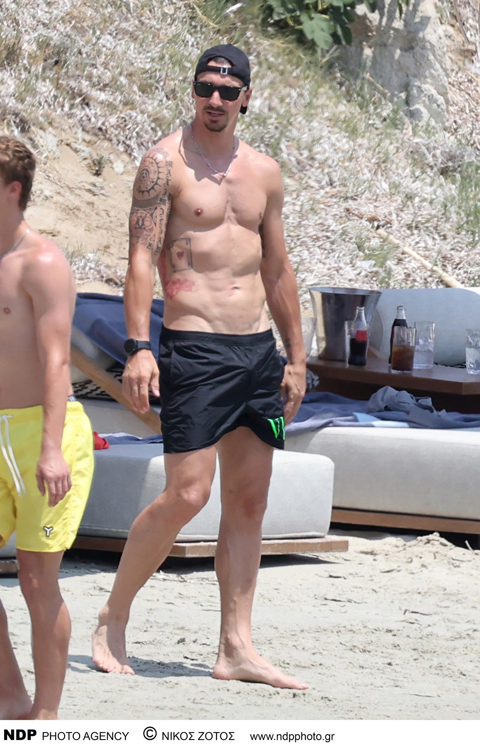 Ο Ιμπραΐμοβιτς εθεάθη σε άποψη φυσική κατάσταση να απολαμβάνει τον ήλιο και τη θάλασσα του Αιγαίου, αδιαφορώντας για την παρουσία του φωτογραφικού φακού. Μαζί του ήταν η σύζυγός του, Σουηδέζα επιχειρηματίας, ηθοποιός και μοντέλο Χελένα Σέγκερ αλλά και ο γιος τους, Μαξιμίλιαν.