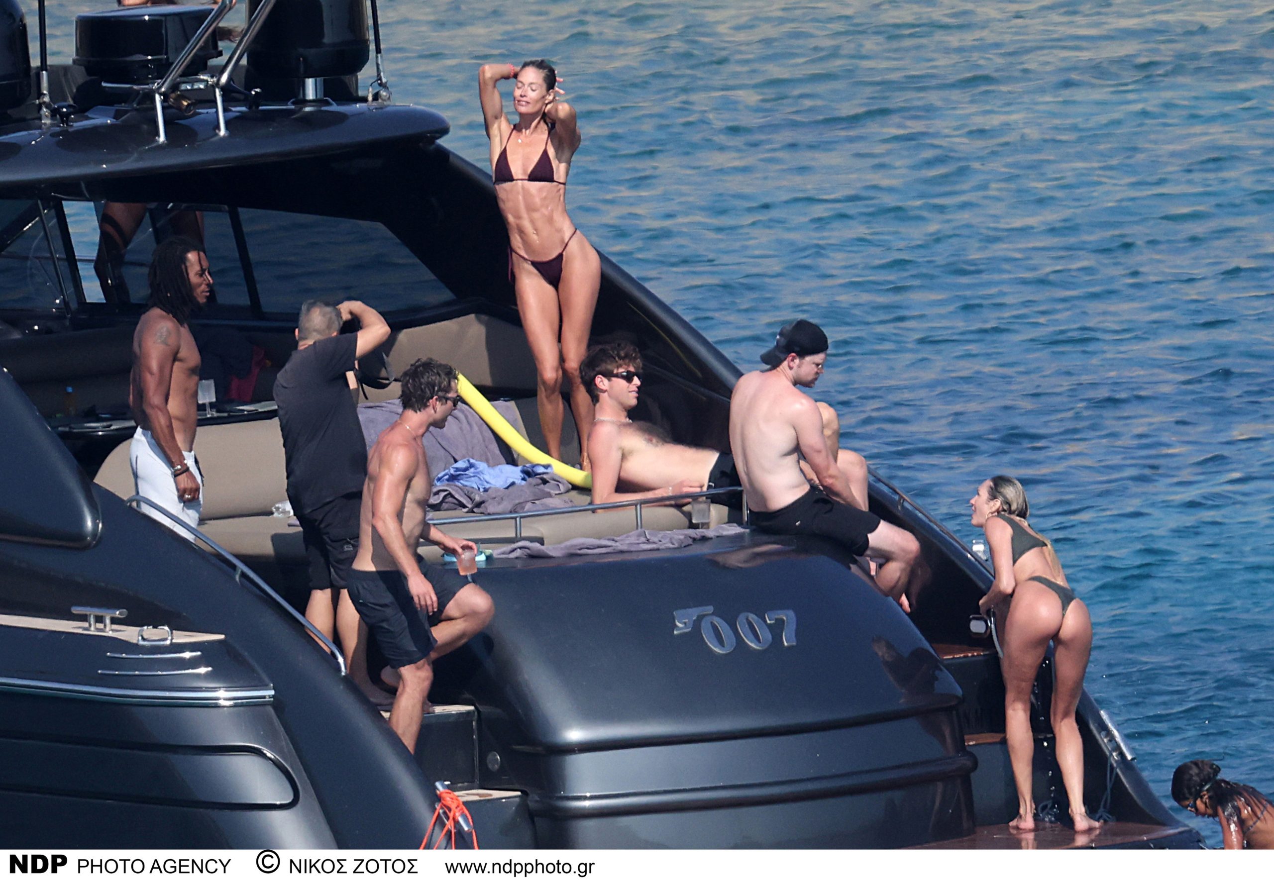 Σε νέες φωτογραφίες που ήρθαν στη δημοσιότητα, η παρέα φαίνεται να διασκεδάζει σε γιοτ, ενώ κάνει βουτιές στη θάλασσα και χορεύει πάνω στο κατάστρωμα.