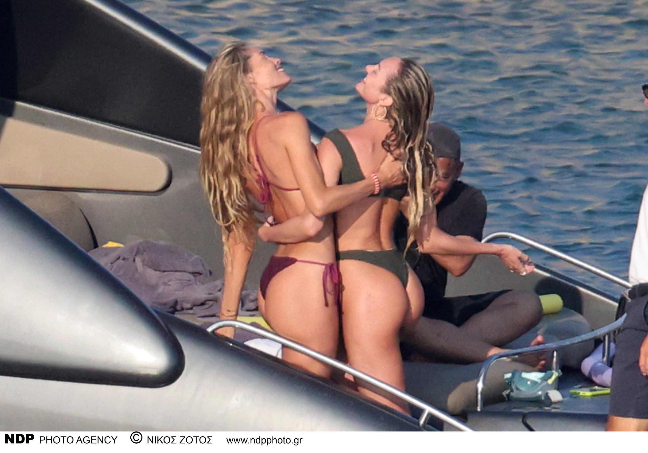 Τα διάσημα μοντέλα, Κάντις Σουάνπολ, Τζοάν Σμολς και Ντάουτζεν Κρόες επισκέφθηκαν τη Μύκονο στα τέλη του Αυγούστου και «τρέλαναν» το νησί με τα «καυτά» μαγιό τους.