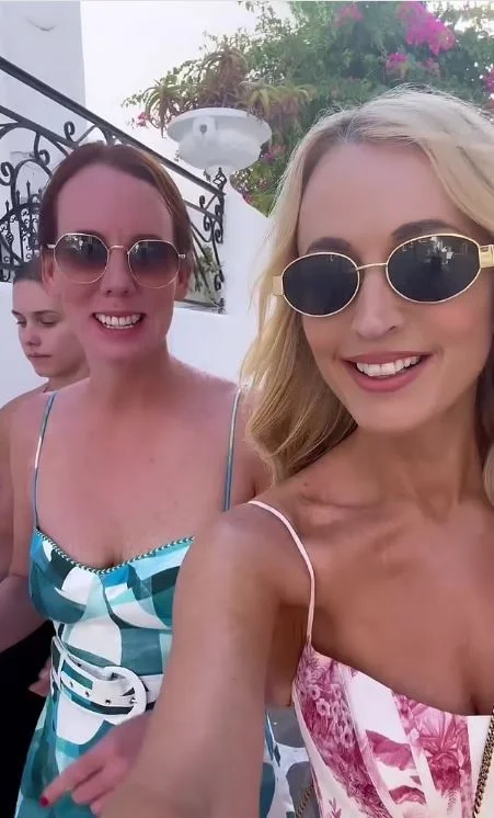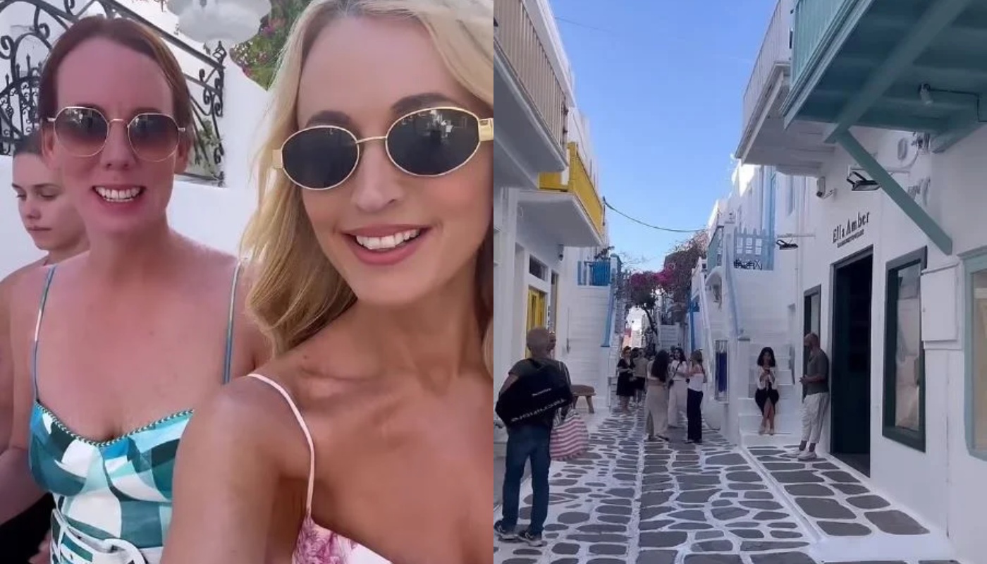 Η 49χρονη ανάρτησε βίντεο στο Instagram της, όπου την δείχνει με μια φίλη της να περιπλανιούνται στα σοκάκια του νησιού, κρατώντας ένα κοκτέιλ στα χέρια τους.