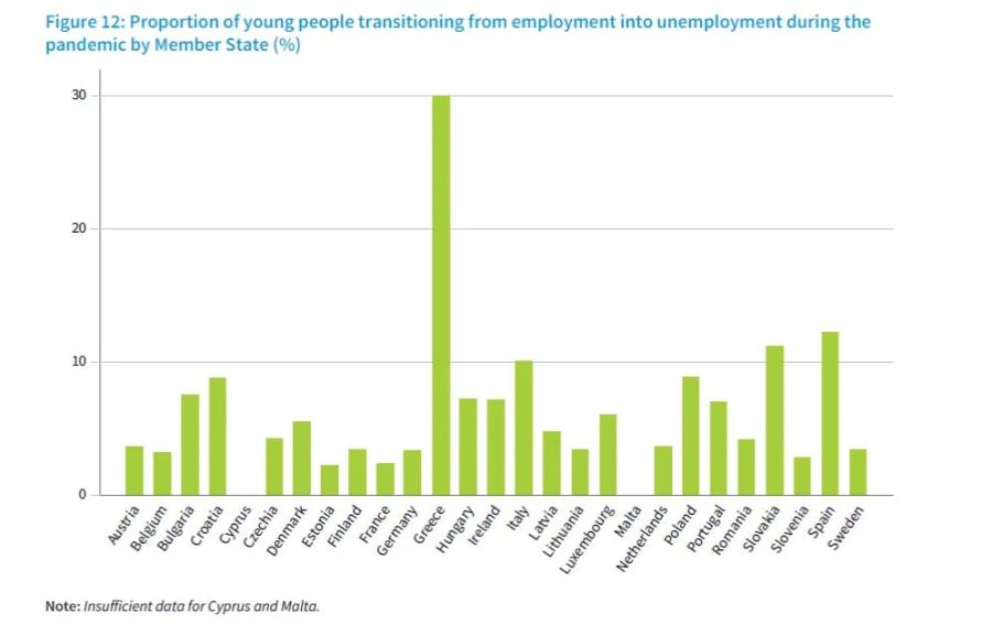 Σύμφωνα με μελέτη του Eurofound, οι νέοι στην Ελλάδα καταγράφουν αρνητική πρωτιά στην Ευρώπη, αφού είναι αυτοί που είχαν τις μεγαλύτερες δυσκολίες στο να βρουν απασχόληση και ήρθαν αντιμέτωποι με την ανεργία σε μεγαλύτερο βαθμό από τις μεγαλύτερες ηλικιακές ομάδες.
