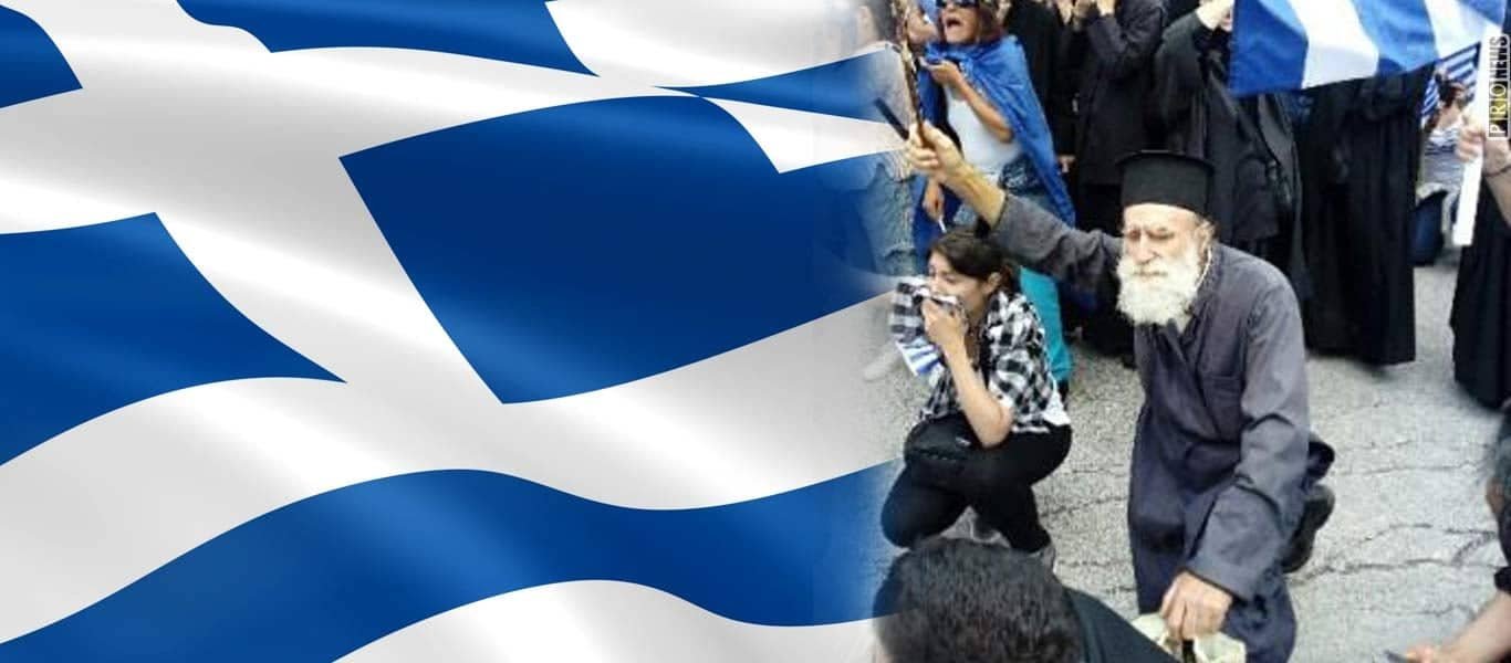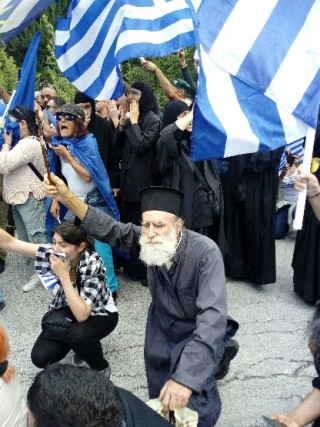 Άξιος διάδοχος του Παπαφλέσσα και του Γερμανού Καραβαγγέλη ο Πάπα Γιώργης γονατίζει μαζί με το ποίμνιό του και αποφεύγει τις βομβίδες που εκτοξεύουν απευθείας κατά του πλήθους οι δυνάμεις ασφαλείας.