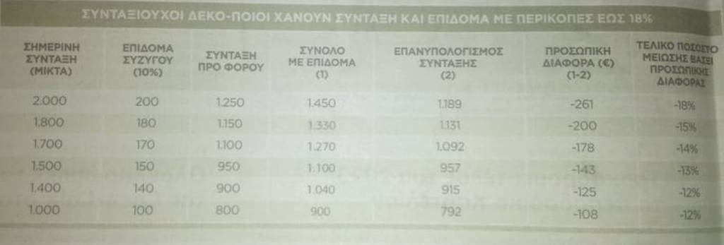 Αντίθετα, το τρικ του συνυπολογισμού των επιδομάτων στις συντάξεις διασώζει με μικρότερες μειώσεις όσους έχουν προσωπική διαφορά μεγαλύτερη του 18%.